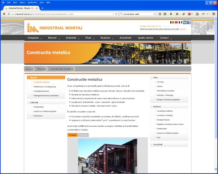 We created and launched the new web site presentation of the company Industrial Montaj in Ploiesti, one of the most important companies in the construction, installation and maintenance of industrial installations.