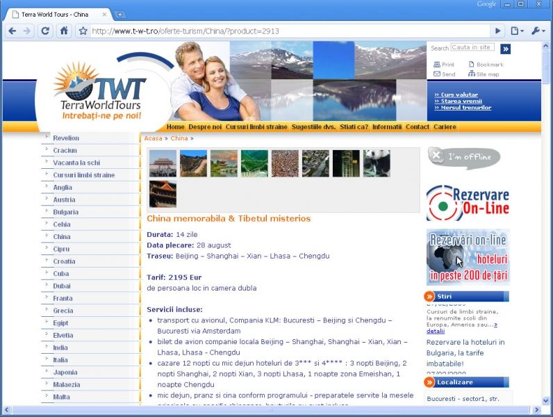 Travel Site for Terra World Tours, based on CMS.AXART content management system.