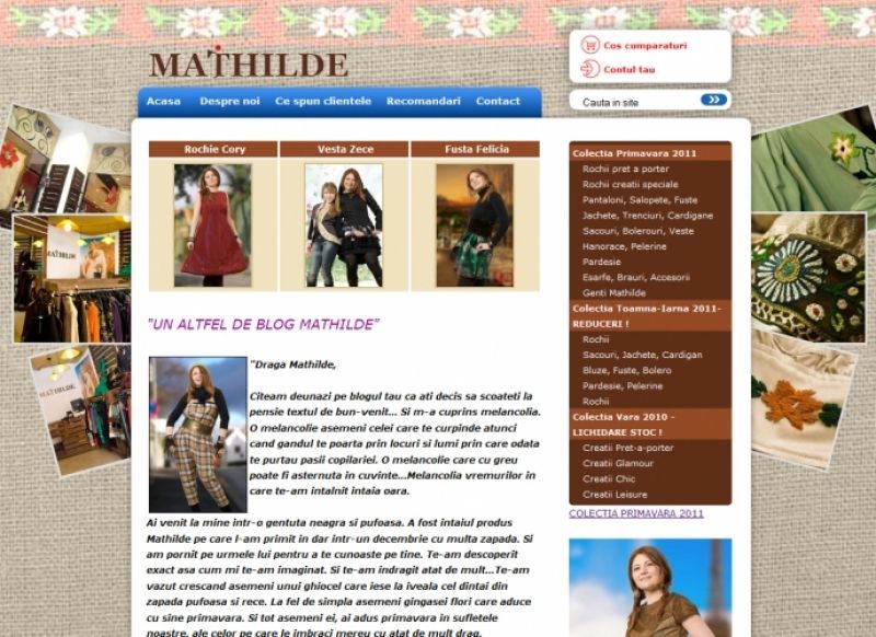 The aim of this project is to adapt to the demands Mathilde.ro online store appearance a market increasingly more demanding by including modern techniques of presentation products.