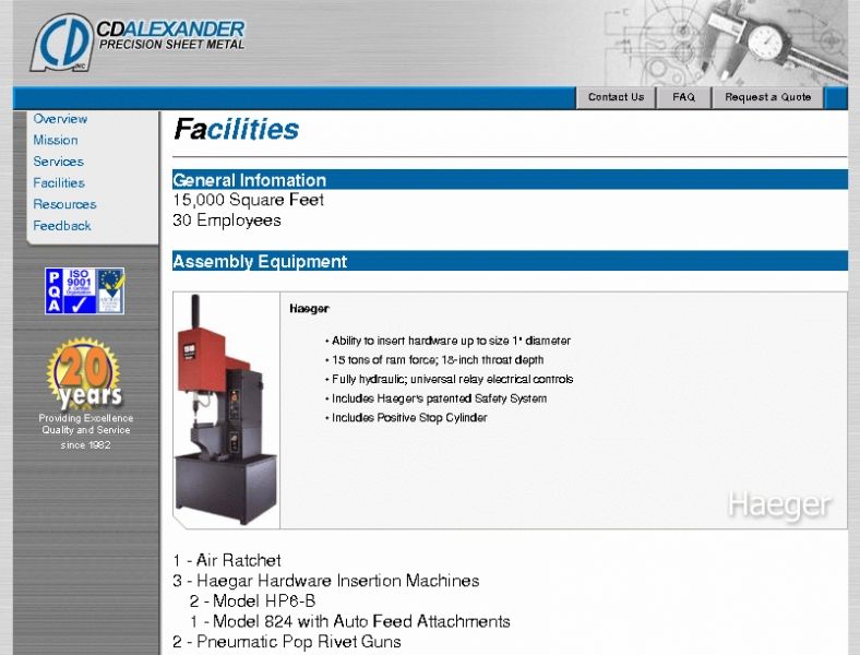 As a subcontractor of Baerst Data Services I realized for www.cdalexander.com design, website of a company in manufacturing metal products - high-precision cutting, small series production.