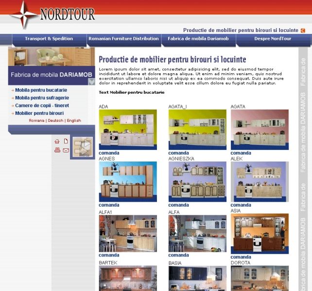 Design and programming NordTour web site, a transport company and furniture production. Amenities: gallery with ordering products online, dynamic menus, printable, send page by e-mail.
