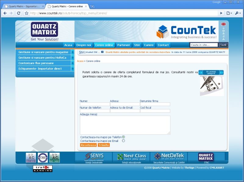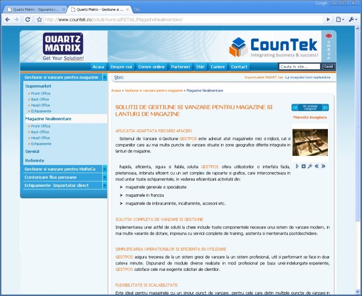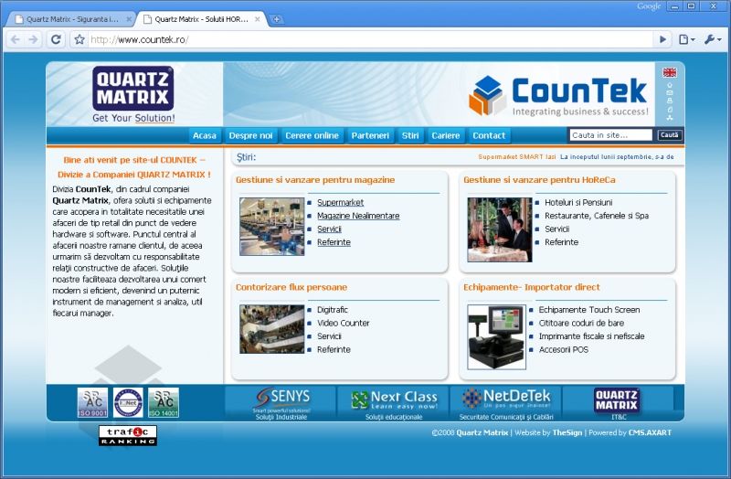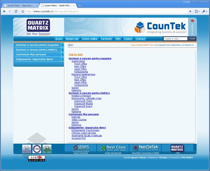 The site is based on CMS.AXART system, content management system that underlies the company's main site - www.quartzmatrix.ro.