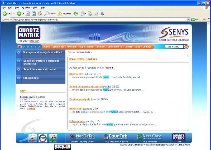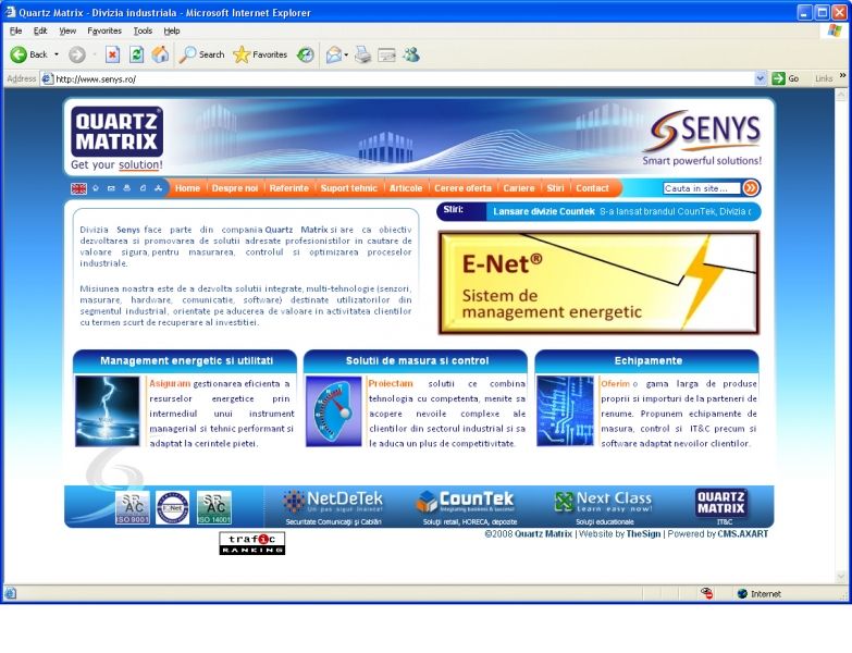 Site creation took place around CMS.AXART system, content management system that underlies the company's main site - www.quartzmatrix.ro.