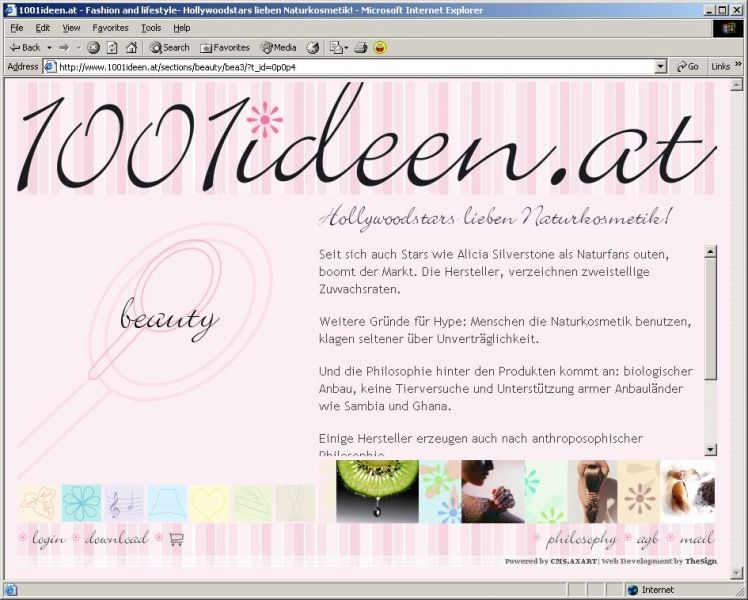 In colaborare cu firma austriaca IT Planung am produs si lansat magazinul online www.1001ideen.at. Solutia CMS.AXART a permis crearea unui site dinamic continand articole si produse cu facilitatea de e-shop si management al continutului.