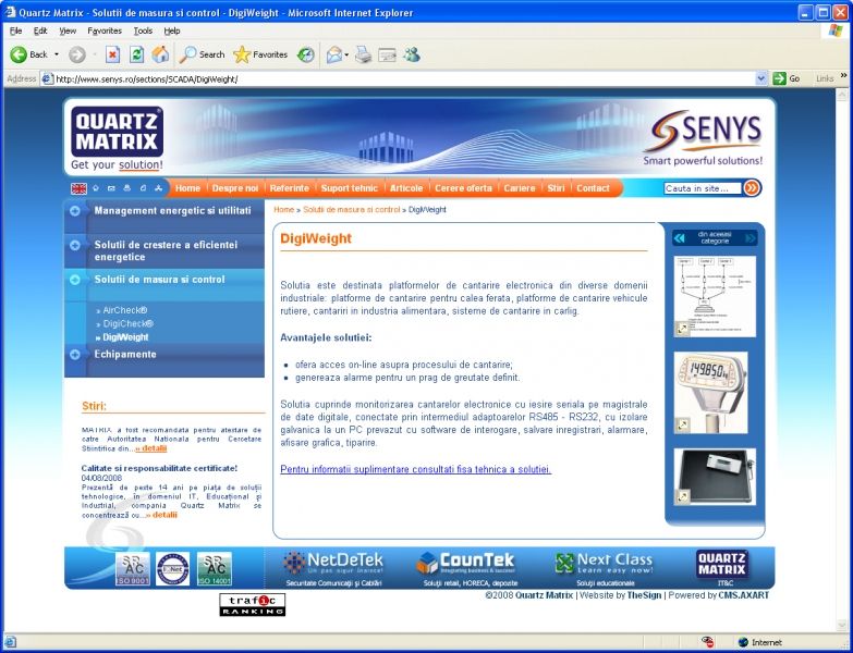 Am creat site-ul web pentru Senys - divizie a companiei Quartz Matrix avand ca obiectiv dezvoltarea si promovarea de solutii adresate profesionistilor pentru masurarea, controlul si optimizarea proceselor industriale.
