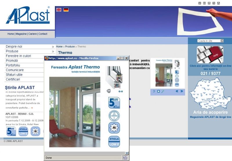 APLAST este o companie cu capital integral romanesc ce a luat fiinta in anul 2000, ca o initiativa privata, 100% romaneasca, avand ca obiect de activitate productia de tamplarie din profile PVC.